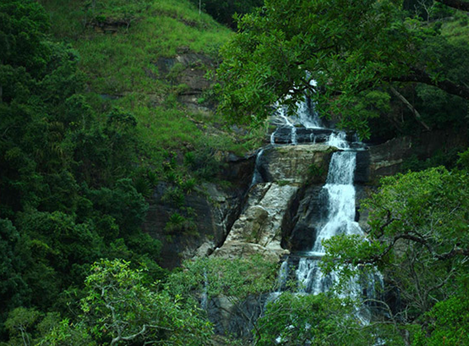 Baker's fall is a famous waterfall in Sri Lanka. It is situated in Horton Plains National Park on a tributary of the Belihuloya Oya.The height of the Baker's waterfalls is 20 metres (66 ft). The falls were named after Sir Samuel Baker, who was a famous explorer. Many Rhododendron and Fern bushes can be seen around the waterfall.